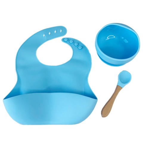 Набір дитячого посуду Силіконова тарілка та слинявчик MGZ-0110(Blue) у коробці