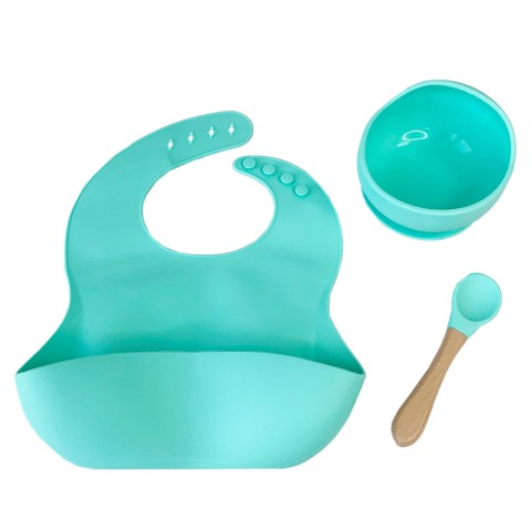 Набір дитячого посуду Силіконова тарілка та слинявчик MGZ-0110(Mint) у коробці