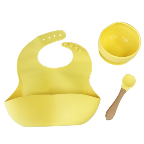 Набір дитячого посуду Силіконова тарілка та слинявчик MGZ-0110(Yellow) у коробці
