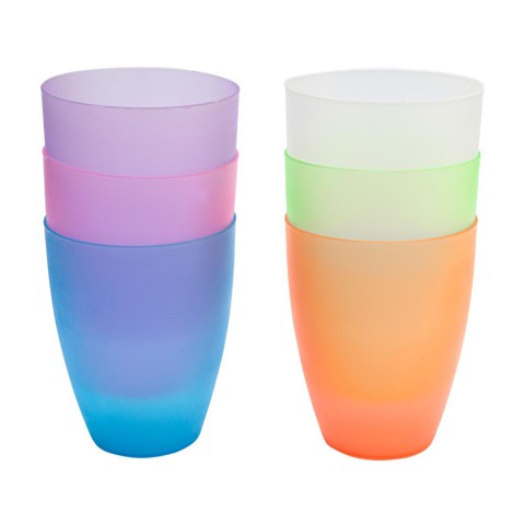 Яскрава, красива ємність для коктейлів, об'ємом 0,48 літра. Має вигляд склянки з круглими стінками та плоским дном. Виріб виготовлений з якісної харчової пластмаси — поліпропілену. Ємність не має неприємного запаху, добре миється, витримує дрібні механічні удари. Виконана декількох колірних варіантах. Знайде своє застосування під холодні коктейлі, сік, компот або просто воду. Порівнюючи зі скляним посудом, така ємність є міцнішою й ударостійкою, а також має порівняно низьку вартість, що робить її привабливою для повсякденного використання. Яскраві оригінальні кольори дають змогу розташувати такі стаканчики на відкритій полиці як елемент інтер'єру.