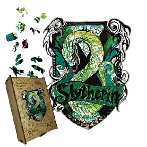 Пазл дерев'яний 'Слізерін': розкрийте двері до світу хитрості та амбіцій, збираючи цей вражаючий образ символу винахідливості та схильності до змін, і відчуйте себе частиною великого дому Слізерін!