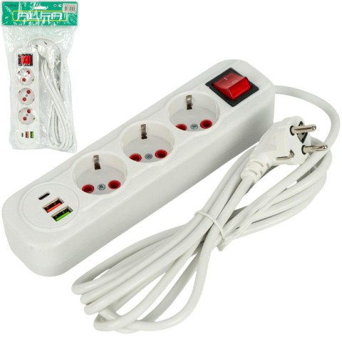 Подовжувач електричний 3 розетки 2 USB + Type-C 3 м