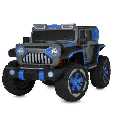 Артикул M 5845EBLRБренд Bambi RacerТип джипРозміри товару довжина 138см ширина по дзеркалах/ колесам 82см висота 77см вага 39,8кг відстань від сидіння до педалей 35смДопустиме навантаження За вагою до 50кг За віком від 3-10 роківМотор Кількість/V/RPM 4*45W / 12V / RPM12000Батарея Кількість/V/AH 12V12AH Індикатор батареї +Заряджання V/mA 12V/2000mA Час на зарядку 8-12год Індикатор заряджання +Старт Старт з кнопки Звук під час старту + Плавний старт у звичайному режимі -Швидкість км/год 8км/год Кількість швидкостей на панелі/на пульті 1/3 Педаль газу + Педаль-гальмо -Світло Фари Передні/Задні Підсвічування Лобове скло, салон, решітка радіатора, корпус, запаска Кнопка вмик/вимик світла +Звук Музика MP3+USB, AUX Карта пам'яті + Сигнал на кермі BLUETOOTH +Управління Пульт керування 2,4G(STOP BUTTON) App(додаток) + Рух вперед/назад кнопкаСидіння кількість місць 1 Ремені безпеки 5-ти точкові Матеріал екошкіра Ширина посадкового місця 43смКолеса Матеріал EVA Розмір передніх коліс/дисків 38см/29см Розмір задніх коліс/дисків 38см/29см Простий монтаж +Корпус Матеріал пластик Дах -Амортизатори Передні - Задні +Додаткові функції Двері відчин. + Демо-режим + Бат.ручка - Дод. Коліщатка - Кондиціонер - Килимок - Причіп - Додаткові елементи Картрідер SD/TF карт, капот відчиняється КОРОБКА Брутто/Розмір 37,75кг/128-70-59см Кількість шарів 5 Наявність кольорового постера -