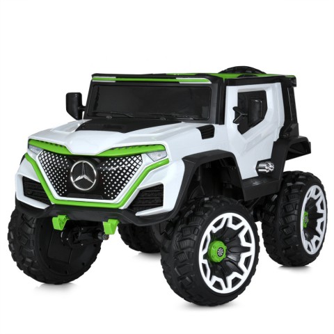 Артикул M 5912EBLRБренд NO TM / Mercedes-BenzТип джипРозміри товару довжина 131см ширина по дзеркалах/ колесам 82см/80см висота 76см вага 31кг відстань від сидіння до педалей 34смДопустиме навантаження За вагою до 30кг За віком від 3-8 роківМотор Кількість/V/RPM 4*25W / 12V / RPM15000Батарея Кількість/V/AH 12V10AH Індикатор батареї +Заряджання V/mA 12V/1500mA Час на зарядку 8-10год Індикатор заряджання +Старт Старт з кнопки Звук під час старту + Плавний старт у звичайному режимі +Швидкість км/год 6км/год Кількість швидкостей на панелі/на пульті 1/3 Педаль газу + Педаль-гальмо -Світло Фари Передні/Задні Підсвічування Лобове скло, решітка радіатора Кнопка вмик/вимик світла +Звук Музика MP3+USB, AUX Карта пам'яті + Сигнал на кермі BLUETOOTH +Управління Пульт керування 2,4G(STOP BUTTON) App(додаток) + Рух вперед/назад з кнопкиСидіння кількість місць 1 Ремені безпеки 2-х точкові Матеріал екошкіра Ширина посадкового місця 44смКолеса Матеріал EVA Розмір передніх коліс/дисків 37см/26,5см Розмір задніх коліс/дисків 37см/26,5см Простий монтаж +Корпус Матеріал пластик Дах -Амортизатори Передні - Задні +Додаткові функції Двері відчин. + Демо-режим - Бат.ручка - Дод. Коліщатка - Кондиціонер - Килимок - Причіп - Додаткові елементи Картрідер SD/TF карт, позаду кріпиться запасне колесоКОРОБКА Брутто/Розмір 36,5кг/118-73-63см Кількість шарів 5