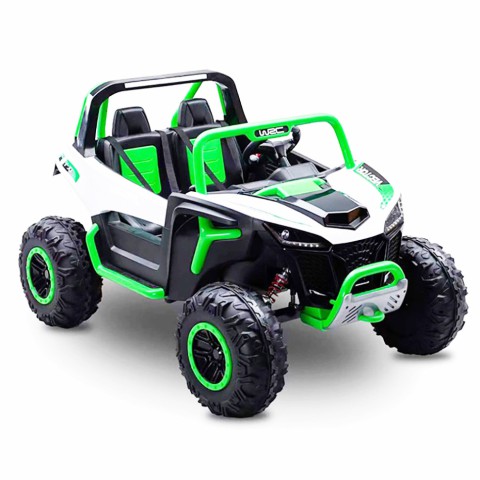 Двомісний дитячий електромобіль M 6066EBLR баггі - це не просто іграшка, а справжній транспорт для активних та веселих прогулянок, він надовго захопить дитину та подарує їй масу радості. Катання на такому баггі відмінно розвиває координацію, покращує навички водіння та дарує малюкові незабутні враження.Дитячий електромобіль баггі M 6066EBLR оснащений плеєром, який підтримує відтворення улюблених треків з флешки або карти пам'яті, наявність музики робить кожну подорож ще веселішою та цікавішою.Артикул M 6066EBLRБренд Bambi RacerТип джипДопустиме навантаження За вагою до 40кг За віком від 3 роківМотор Кількість/V/RPM 2*45W / 12V / Батарея Кількість/V/AH 2*12V7AH Індикатор батареї +Заряджання V/mA 24V/1000mA Час на зарядку 8-12год Індикатор заряджання +Старт Старт з кнопки Звук під час старту + Плавний старт у звичайному режимі +Швидкість км/год 2-5км/год Кількість швидкостей на панелі/на пульті 2/3 Педаль газу + Педаль-гальмо -Світло Фари Передні Підсвічування - Кнопка вмик/вимик світла +Звук Музика MP3+USB Карта пам'яті + Сигнал на кермі BLUETOOTH +Управління Пульт керування 2,4G(STOP BUTTON) Рух вперед/назад важільСидіння кількість місць 2 Ремені безпеки 2-х точкові - 2шт Матеріал екошкіраКолеса Матеріал EVA Простий монтаж +Корпус Матеріал пластик Дах -Амортизатори Передні + Задні +Додаткові функції Двері відчин. +