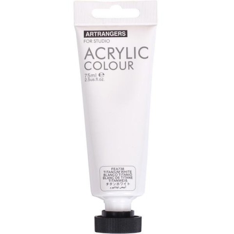 Акрилова фарба "Art Ranger" у відтінку Титанові білила (Titanium White, FEA738) має об'єм 75 мл. Вона на водній основі, нетоксична та майже без запаху. Фарба легко змішується з іншими кольорами і рівномірно наноситься на різні поверхні, такі як полотно, папір, картон, дерево. Напівматовий фініш забезпечує рівне покриття та зберігає яскравість після висихання. Підходить для роботи пензлем, мастихіном та аерографом.