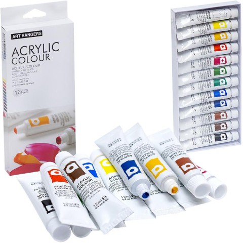 Акрилові фарби для малювання, живопису, творчості. Характеризуються насиченим кольором та гарною прозорістю. Підходять для роботи на папері, художньому полотні, дереві, камені, металі, штукатурці. Комплектація: 12 туб акрилових фарб, ємністю 12 мл. Упаковка: картонна коробка. Розмір 23х11х2см