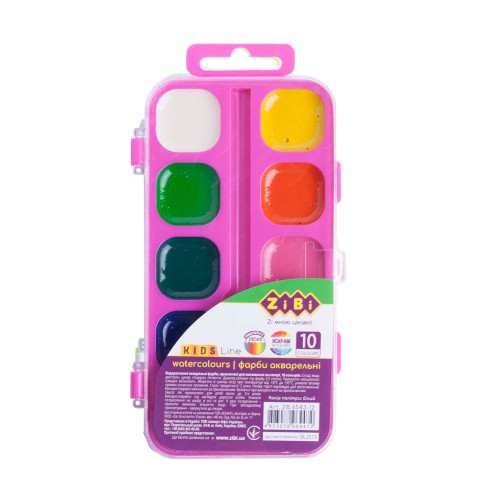 Фарби акварельні, 10 кольорів, пластикова коробка, без пензля, рожевий