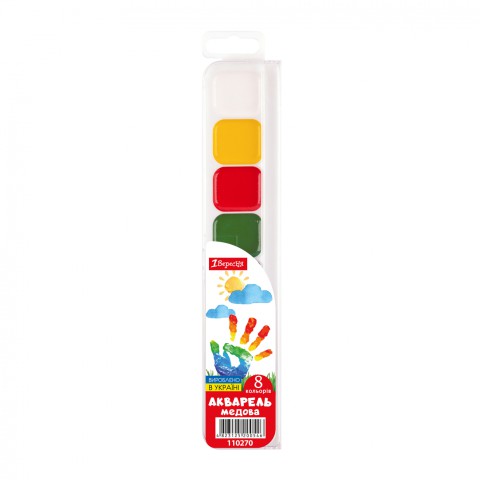 Фарби акварельні 1 Вересня, 8 кольорів, медові, без пензля
