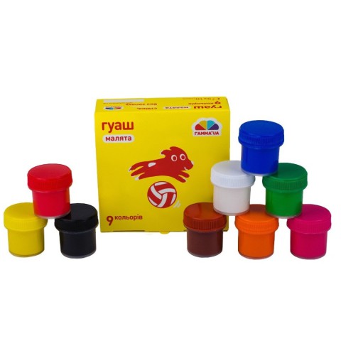 Набір гуаші ГАММА'UA Малята має дуже яскраву упаковку, яка обов’язково приверне увагу малюків та їхніх батьків ще у магазині. Тому ця продукція дуже популярна та швидко розкуповується. До набору увійшли 9 кольорів фарби. Кожен з них упакований у пластиковий прозорий контейнер. Завдяки такому пакуванні фарби дитина з легкістю орієнтується у палітрі кольорів.