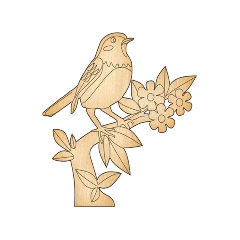 Фігурка для розфарбовування та декорування, #250 «Пташка на гілці» виготовлена методом лазерного різання. Призначена для створення декоративних композицій, підвісних прикрас, ялинкових іграшок, брошок тощо. Може також використовуватися в декупажі та розписі, для прикраси меблів, створення об'ємних, багатошарових картин або інтер'єрного декору.