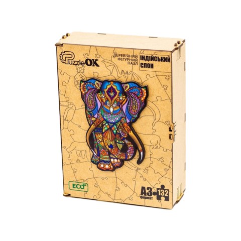 Фігурний дерев'яний пазл A3 "Індійський слон" PuzA3-03121, 132 деталі