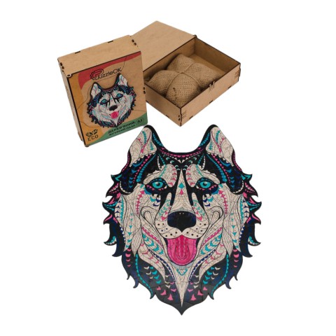 Фігурний дерев'яний пазл A3 "Сніжний хаскі" PuzA3-03112, 123 деталі