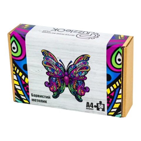 Фігурний дерев'яний пазл A4 Барвистий Метелик PuzA4-01723, 60 деталей