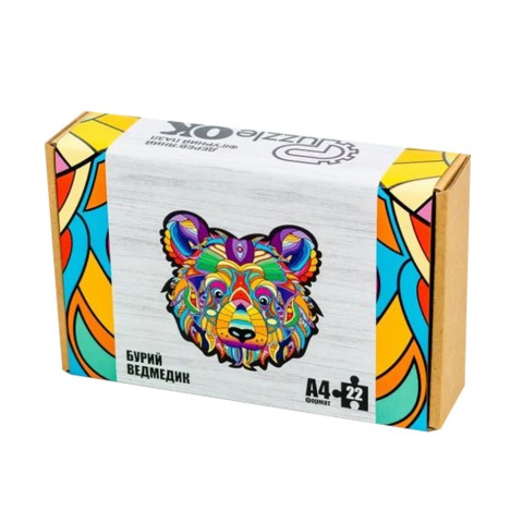 Подаруйте собі мить затишку з цим фігурним дерев'яним пазлом "Бурий Ведмедик"! Формат А4, унікальні елементи, що складаються в чарівний образ ведмедика. Екологічно чистий матеріал та зручна картонна упаковка роблять цей пазл чудовим вибором для дітей та дорослих.