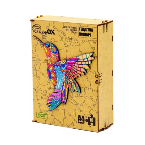 Фігурний дерев'яний пазл A4 Тендітна Колібрі PuzA4-04107, 70 деталей