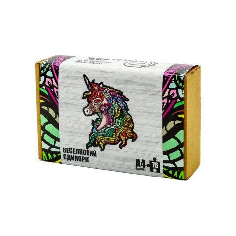 Пориньте у світ магії та фантазій з цим фігурним дерев'яним пазлом "Веселковий Єдиноріг"! Формат А4, унікальні елементи, що складаються в яскравий та чарівний образ єдинорога. Екологічно чистий матеріал та зручна картонна упаковка роблять цей пазл чудовим подарунком для тих, хто вірить у дива.
