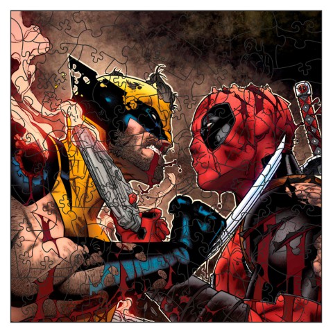Фігурний пазл з дерева "Дедпул і Росомаха" PZ002-A3W-AC 180-250 деталей, А3 з мішечком і стрічкою