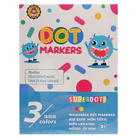 Ці маркери недарма стали улюбленцями маленьких художників. Набір крапкових ДОТ маркерів чудово підходить для ранньої дитячої творчості, розвитку дрібної моторики рук, вивчення нових кольорів та їхніх відтінків.Фарба виготовлена на водній основі, не має запаху, дуже легко змивається з будь-яких поверхонь і ручок дитини. Особливості:- 3 маркери у наборі;- об’єм кожного - 60 мл;- фарби на водній основі;- перед початком використання необхідно ретельно збовтати рідину.* Характеристики та комплектація товару можуть змінюватися виробником без повідомлення