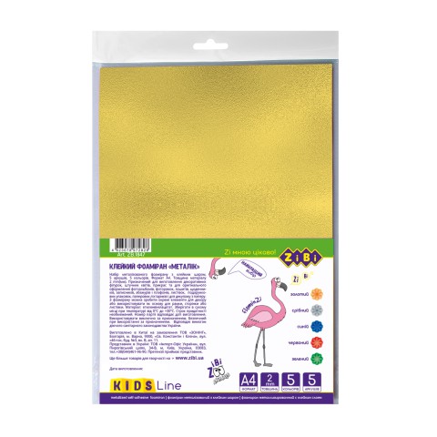 Фоаміран металізований із клейким шаром KIDS Line, 2 мм, А4, 5 аркушів в упаковці (В асортименті)