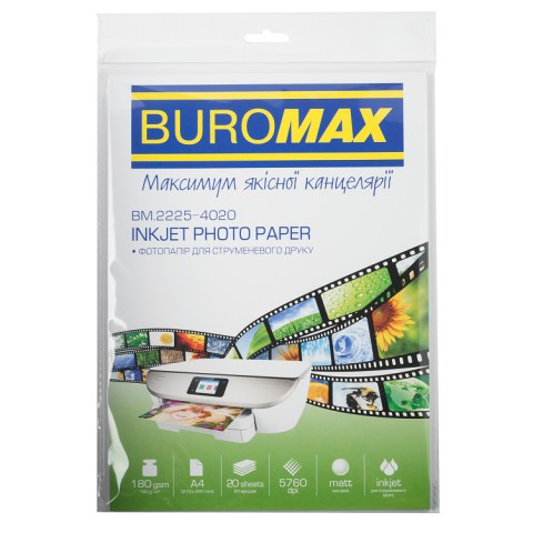Фотопапір матовий, А4, 20 аркушів – Фотопапір матовий (А4, 20 аркушів) – односторонній фотопапір для струменевого друку. Забезпечує м’які, природні кольори та високу якість зображення. Ідеальний для дитячих творчих проєктів. Замовляйте на Demsky.com.ua для якісного друку!