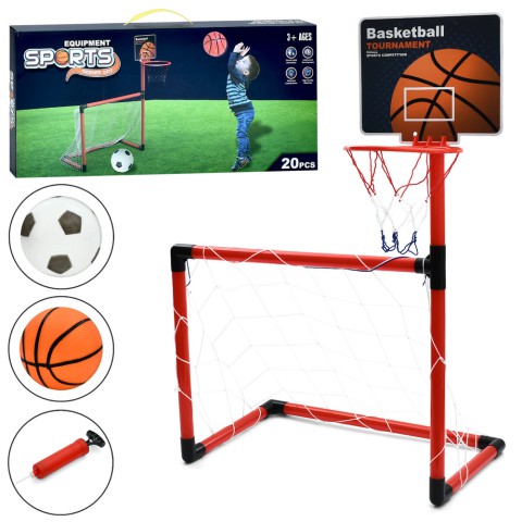 Футбольні ворота 2в1, баскетбольне кільце пластикове 20 см, 57x32x88 см, 2 сітки, 2 м’ячі, насос
