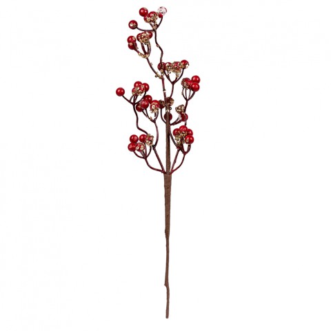 Гілка декоративна Yes! Fun, 45 см, з червоними ягодами, паєтки, золото