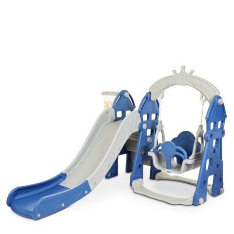 Дитяча гірка-гойдалка пластикова 146*183*120 см з баскетбольним кільцем Bambi HOUSE-4 Сіро-синяДитяча гірка-гойдалка HOUSE-4 з кільцем, сіро-синя - є якісною, стильною і функціональною моделлю, яка зможе стати гідним подарунком для дитини, ігровий центр містить гірку і гойдалку, також є кільце для гри в баскетбол.Дитяча гірка-гойдалка HOUSE-4 виготовлена з міцного пластику високої якості, стійкого до впливу вологи та сонця, що дає змогу використовувати гірку як у приміщенні, так і на вулиці, цю модель обладнано кількома сходами для зручного підйому наверх.Дитяча гірка HOUSE-4 - створена з турботою про комфорт і безпеку дитини, сидіння гойдалки обладнане страхувальним бампером із захистом від сповзання, така гірка гарантує вашому малюкові веселе і цікаве проведення часу.Характеристики:Гірка: прямаДовжина гірки - 158 смШирина гірки - 38 смВисота від підлоги до початку гірки - 62 смРозміри гойдалки: довжина - 36 см, ширина - 51 см, висота - 39 смКріплення: гачок (метал)/мотузкаВисота від підлоги до сидіння - 22 смРозмір сидіння: ширина - 28 см, глибина - 28 смБаскетбольне кільце: пластикДіаметр кільця - 28 смКільце із сіткоюУ комплекті: м'ячМатеріал: пластмаса