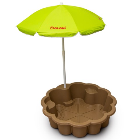 Пісочниця-басейн Квітка з парасолькою Фламінго, темно-коричнева, d80 см – Пісочниця-басейн Квітка Фламінго темно-коричневого кольору діаметром 80 см – ідеальний вибір для дитячих ігор. Виготовлена з міцного, нетоксичного пластику, оснащена парасолькою для захисту від сонця. Форма квітки з пелюстками-сідіннями забезпечує комфорт кільком дітям. Підходить для піску чи води, розвиває творчість і моторику. Легко встановлюється, стійка до погодних умов. Чудовий подарунок для малюків. Замовляйте на Demsky.com.ua!