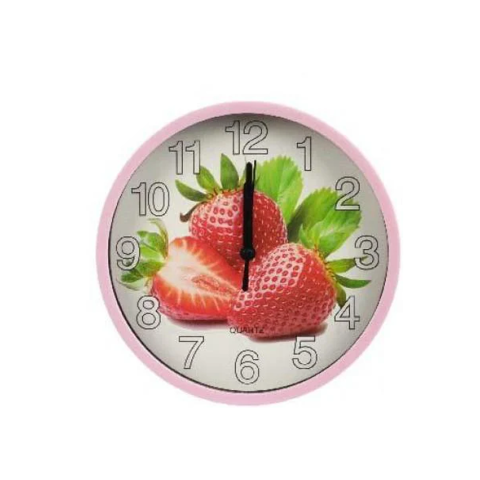 Настінний годинник Круг кольоровий Фрукти D19,5×4 см - круглий з фруктовими малюнками, яскравий для кухні чи дитячої.