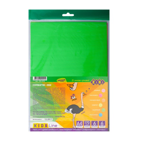Гофрокартон неоновий, А4, 6 кольорів, 6 аркушів - неоновий гофрокартон формату А4, 6 кольорів, 6 аркушів для дітей від 6 років. Яскраві неонові кольори додають енергії до дитячих поробок і аплікацій. Розвиває уяву та творчість. Створи яскраві проєкти на demsky.com.ua!