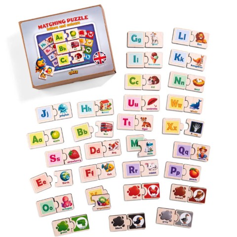 Гра дерев’яна розвиваюча Пазли-половинки Англійська абетка та кольори Ubee ПСД253 – пазли-половинки для абетки та кольорів англійською. Дерев'яна, для від 3 років.