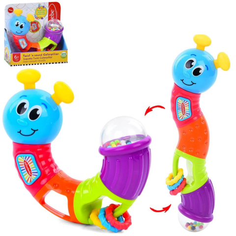 Гра для малюків Гусінь PLT5432, 16 см, брязкальце, рухливі деталі, тріскачка, прорізувач, пискавка