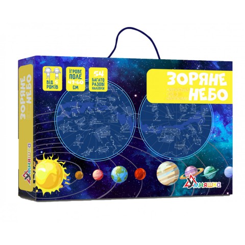 Зоряне небо - ваш незамінний помічник для подорожей в космос! Великий постер у вигляді карти зоряного неба зачарує малюка. Вас чекають 45 сузір'їв, планети сонячної системи і небесні тіла.Для дітей від 5 років. Склад:Ігрове поле 41х60 см;Багаторазові наклейки-54 шт. Коробка з шнурком. Розмір коробки: 30,5х4х21 см.
