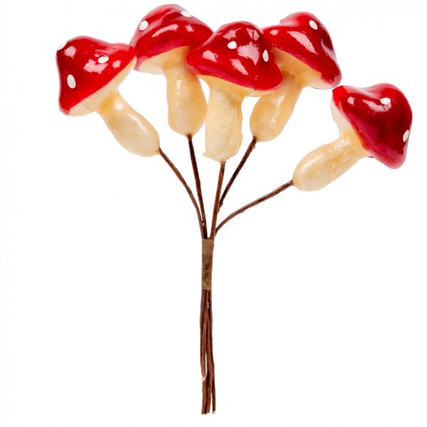 Набір декоративних глянцевих Мухоморів від Yes! Fun – це милий та оригінальний елемент декору, який додасть казковості та природної чарівності до Ваших композицій. У пучку представлено 5 мініатюрних грибів заввишки 3 см, виготовлених з якісного матеріалу з яскравою глянцевою поверхнею, що імітує справжні мухомори.