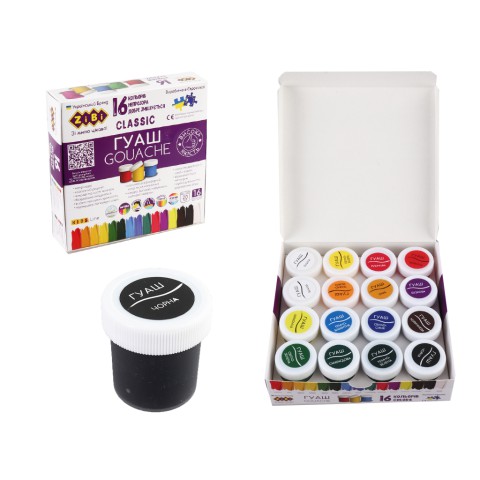 Фарби гуашеві Classic, 16 кольорів, 20 мл, картонна коробка, Kids Line