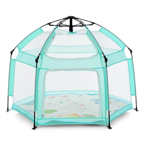 Усі стінки виконані з прозорої сітки, яка забезпечує оптимальну вентиляцію та дозволяє батькам спостерігати за дитиною з будь-якого боку.