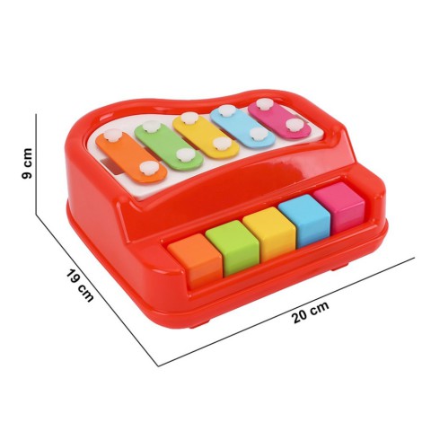 Історія іграшки "Ксилофон" йде з давніх-давен багатьох народів з різних куточків світу. Перші ксилофони з'явилися 2000 років тому у стародавніх народах Латинської Америки, Азії та Африки. Але, незважаючи на свій поважний вік, іграшка залишається однією з найпопулярніших у віковій категорії 2+. А ще, з малюків, яким у дитинстві подарували іграшковий ксилофон, виростають справжні маестро, які виступають у найбільших концертних залах.Пропонуємо Вам сучасний варіант ксилофона для найменших. Іграшковий ксилофон-фортепіано від ТехноК поєднує в собі 2 музичні інструменти: ксилофон та фортепіано з клавішами. Для гри на ксилофон іграшка комплектується двома спеціальними паличками. Іграшку рекомендуємо дітям від 2-х років, хоч вона, безумовно, цікава і для менших дітей. Ксилофон відноситься до музичних іграшок, перші кроки на якому варто пройти з дорослими.Потрібно пояснити дитині, як сила та дзвінкість звуку залежить від сили удару, а сам звук залежить від клавіші та пластини, яка різниця між звуками від різних клавіш. Особливу увагу слід звернути на безпечне використання паличок ксилофону! Для запобігання травмуванню палички слід давати дитині тільки тоді, коли іграшка використовується під безпосереднім наглядом дорослого.Наш ксилофон сприяє розвитку слуху, дрібної моторики, координації рухів рук та очей, допомагає у вивченні кольорів та рахунку. За потреби палички можна надійно закріпити у спеціальних заглибленнях на дні іграшки. Так вони завжди будуть на своєму місці. На допомогу початківцям та навіть досвідченим музикантам, коротка інструкція на коробці з мелодією популярної пісні "Jingle bells". Міцна конструкція та порівняно невеликі розміри ксилофону дозволяють брати його з собою на майданчик та дитячу кімнату.Іграшка виготовлена ​​із міцного пластику, без запаху.Працює без батарейок.Упаковка – яскрава напіввідкрита коробка.Розмір пакування: 21х20х10,2 см.