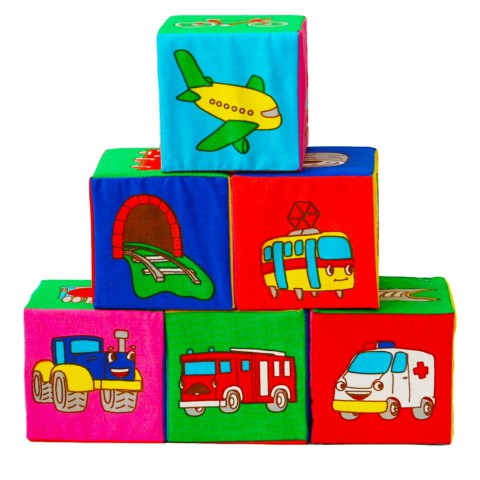 М'які кубики із яскравими тематичними малюнками – ідеальний варіант для захоплюючих та корисних ігор. Кубики можна кидати, м'яти, будувати їх фігури. У процесі гри малюк знайомиться із різними видами транспорту.Вага та розмір кубиків зручні для дитячих ручок. Вони легкі, приємні на дотик, пошиті з натуральних слинопоглинаючих тканин, усередині - гіпоалергенний наповнювач. Не накопичують пил, зберігають форму після прання.Ігри з кубиками сприяють розвитку зору, сприйняття кольору, фантазії, моторики, хапального рефлексу, координації рухів, знайомлять з поняттями розміру, форми, кольору.Виробник – Україна.