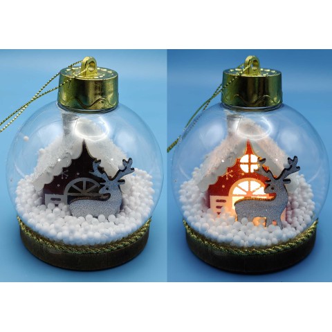 Іграшка на ялинку LED Куля 8 см Олень Будиночок 2501-А