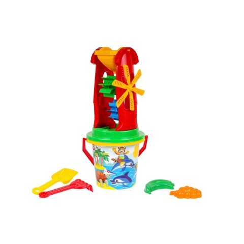 Подаруйте своєму малюкові для гри в піску чудовий пісочний набір, до якого входить цебро, ситечко, пасочки, млин та лопатки з грабельками. Різноманітні форми та яскраві кольори цих іграшок привертають увагу дітей та розвивають пам'ять у малюків. Малюнок на відерці виконаний за технологією IML. Ця унікальна технологія забезпечує стійкість малюнка до вигоряння на сонці та стирання. Малюнок неможливо відклеїти.