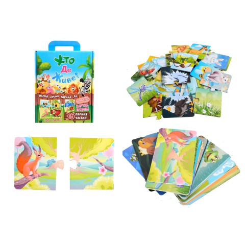 Пазли Стратег Хто де живе? (українською), 36 елементів, 30700 дозволяють зібрати навчальну картину про середовище тварин. Включають 36 елементів із міцного картону та інструкцію. Розвивають знання. Ідеально для дитячих ігор. Створюйте освітні шедеври! Купуйте на Demsky.com.ua.