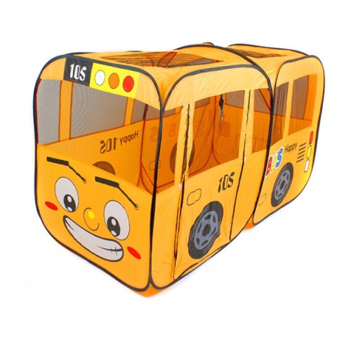 Різнобарвний, яскравий дитячий намет M 1183 автобус - дитячий іграшковий будиночок-тент з саморозкривним механізмом і веселим, яскравим оформленням. Такий намет можна встановлювати не тільки в приміщенні, але і на свіжому повітрі в теплий сезон. Верх моделі розроблений з міцного матеріалу, який не линяє і не має різких запахів. Гнучкі внутрішні арки роблять намет максимально стійким. Облаштовуючи власний затишний куточок, дитина буде вчитися самостійності, акуратності, а також зможе грати в наметі зі своїми друзями або зберігати в ній дитячі скарби. Спеціальні сітчасті вставки і віконця дозволяють повітрю вільно циркулювати для максимального комфорту Вашого непосиди.