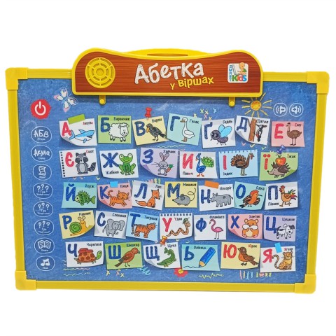 Інтерактивна дошка LIMO TOY SK 0024 Абетка у віршах навчить дитину алфавіту у веселій ігровій формі та стане провідником у світ книжок та шкільного навчання. Маля вивчить нових тварин і легко запам'ятає алфавіт. Дошка багатофункціональна та двостороння, має озвучку українською мовою. На звороті дошки учень зможе у перервах між заняттями помалювати, а згодом і спробувати себе у написанні вивчених літер. Інтерактивна дошка LIMO TOY SK 0024 Абетка у віршах, її можна кріпити на стіну або покласти на будь-яку горизонтальну поверхню. Інтерактивна дошка LIMO TOY SK 0024 Абетка у віршах має слідуючи основні функції:• Алфавіт• 3 веселі пісні• 4 цікаві казки• 33 віршики про тварин• Інтерактивні завдання для розвитку пам'ятіРозмір упаковки: 35х28х2 см.Вік: 3+