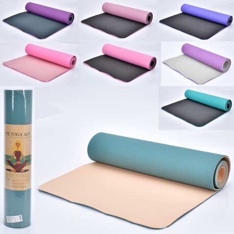 Йогамат TPE, 183x61 см, товщина 0.6 см, двокольоровий, 61x12.5x12.5 см (В асортименті)