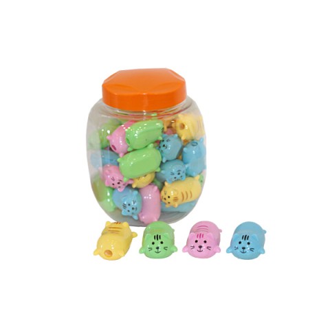 Стругачка Коти, у пластиковій банці, 40 шт., BQ-9034 із милим дизайном. Виготовлена з пластику, з гострим лезом. Сприяє зручному заточуванню олівців. Ідеально для школи. Створюйте акуратні малюнки! Купуйте на Demsky.com.ua.
