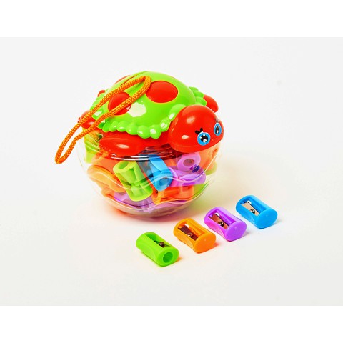 Стругачка у банці Черепаха, 48 шт., 001-2 із яскравим дизайном. Виготовлена з пластику, з гострим лезом. Сприяє зручному заточуванню олівців. Ідеально для школи. Створюйте акуратні малюнки! Купуйте на Demsky.com.ua.
