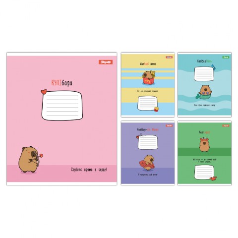 Зошити учнівські 12 аркушів коса лінія 1B Happy Capybara, 25 шт. в упаковці