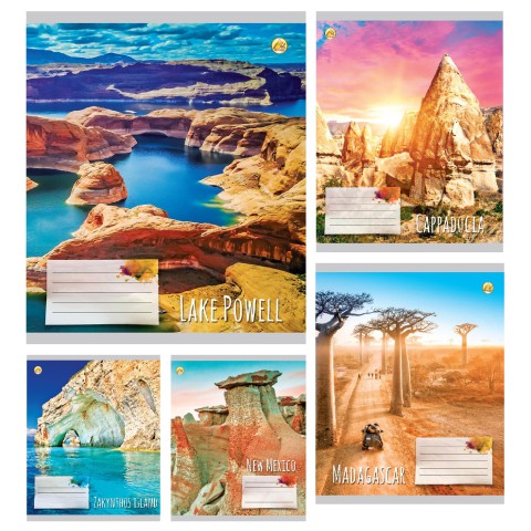 Зошити учнівські 24 аркуша лінія Тверда Ландшафти, 20 шт. в упаковці – Шкільний аксесуар (24 аркуші, Тверда) у лінію з твердою обкладинкою із зображенням ландшафтів. Щільність паперу 55 г/м², кріплення на скобу, кольоровий друк CMYK, ВД-лак. Упаковка містить 20 штук. Зручний для конспектів і записів. Стимулює любов до природи. Замовляйте на Demsky.com.ua для натхненного навчання!
