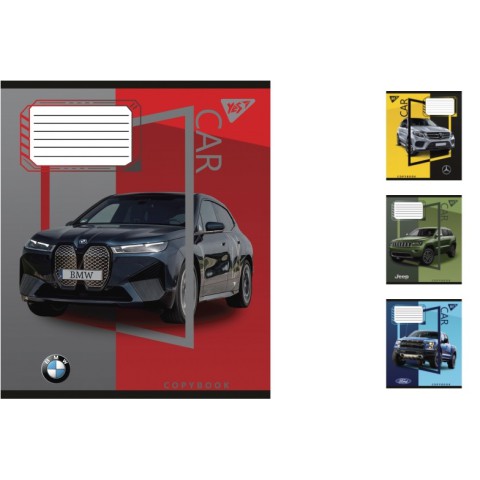 Зошити учнівські 24 аркуша лінія. YES Colour car, 20 шт. в упаковці
